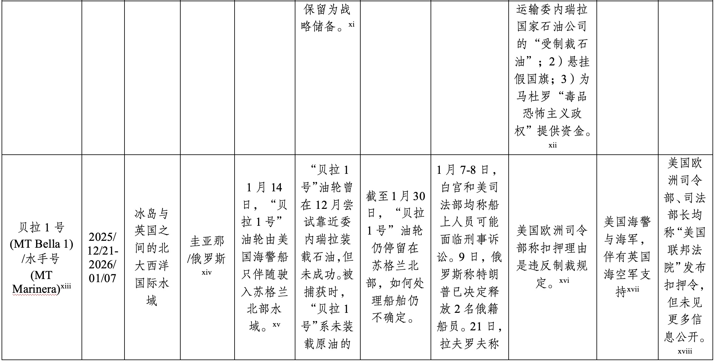 xv 截止1月21日23:44,Marine Traffic的轨迹图显示“贝拉1号”油轮仍滞留在苏格兰北部水域。28日,Marine Executive的报道表明该船仍在苏格兰。Marine Traffic轨迹图见:<>, last accessed 30 January 2026;28日新闻见:Russian Crewmembers Released from Seized Tanker Held in Scotland, <https://maritime-executive.com/article/russian-crewmembers-released-from..., last accessed 30 January 2026.