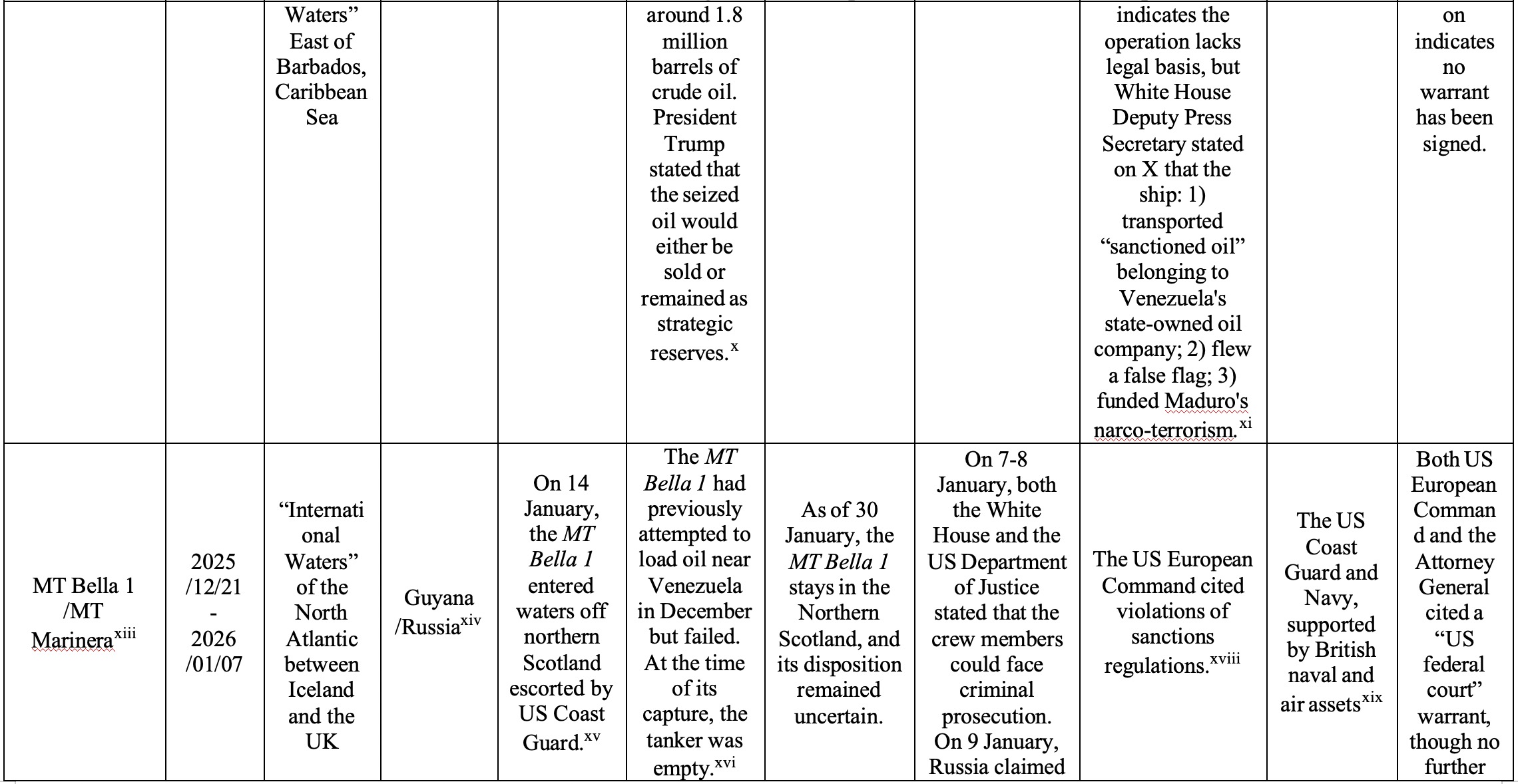 vii U.S. Unseals Warrant for Tanker Seized by Coast Guard Off the Coast of Venezuela, <https://www.justice.gov/usao-dc/pr/us-unseals-warrant-tanker-seized-coas..., last accessed 25 January 2026